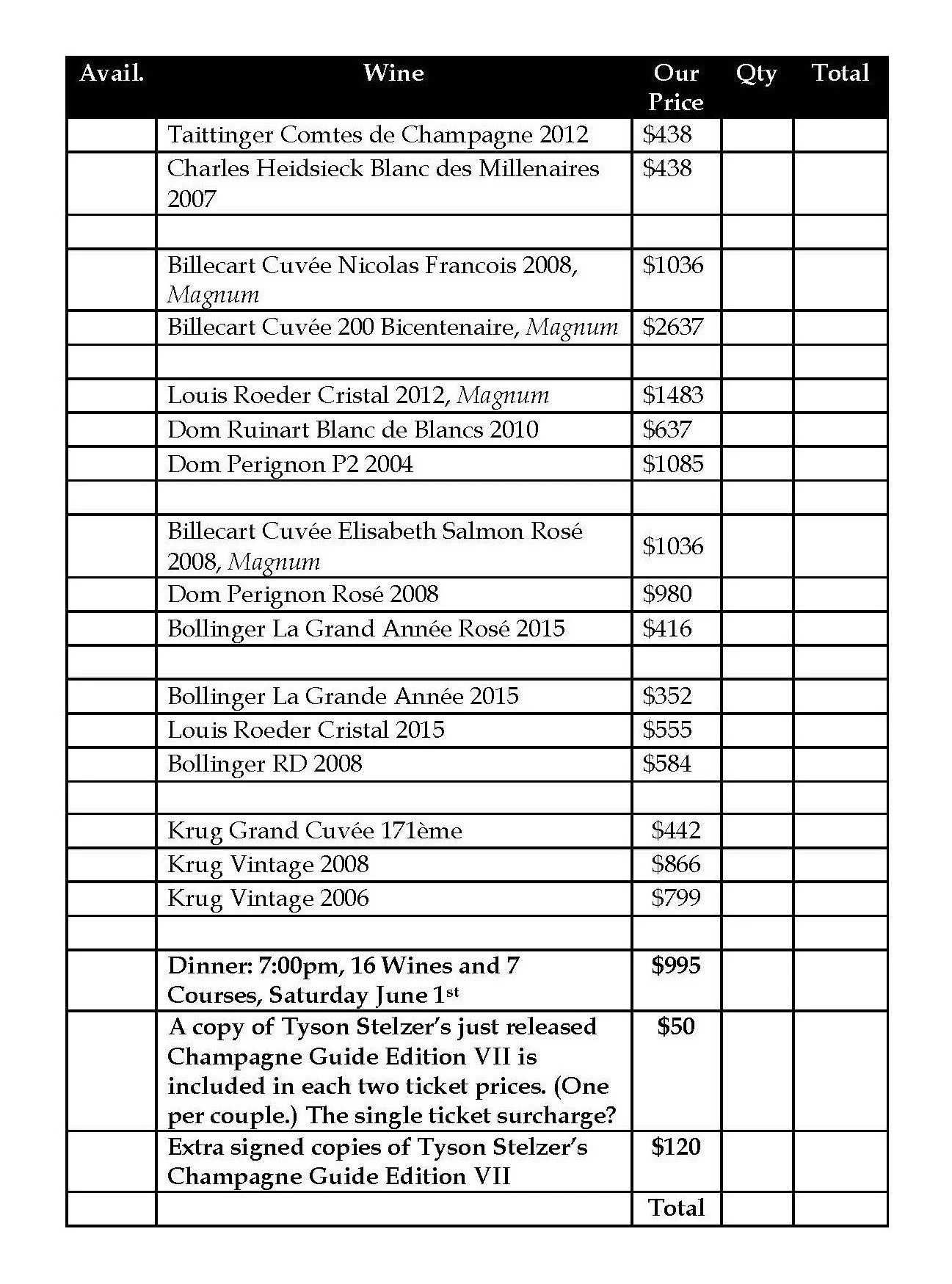 Taittinger Comtes | Heidsieck Blanc des Mill | Billecart - Nicolas Francois, Elisabeth Salmon, & Cuvee 200 Bicentenaire | Cristal | Dom Ruinart | Dom Perignon P2 | Dom Perignon Rosé | Bollinger La Grand Année, & LGA Rosé | Bollinger RD | Krug Grand Cuvée | Krug Vintage “08 & “06!!!
