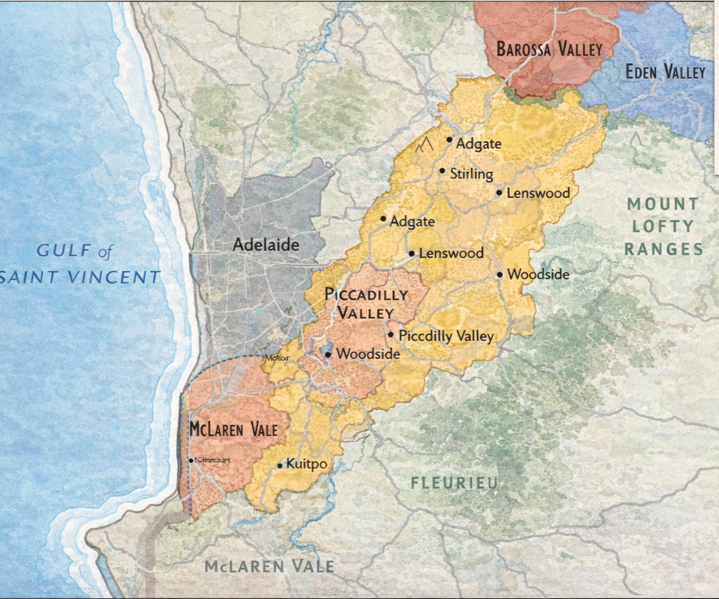 The Adelaide Hills is one of Australia’s highest and coolest mainland wine regions, with vineyards often sitting above 300 metres and in some cases well over 600. That elevation creates a wide range of microclimates across a relatively small area, from the cooler Piccadilly Valley through to slightly warmer sites further north.