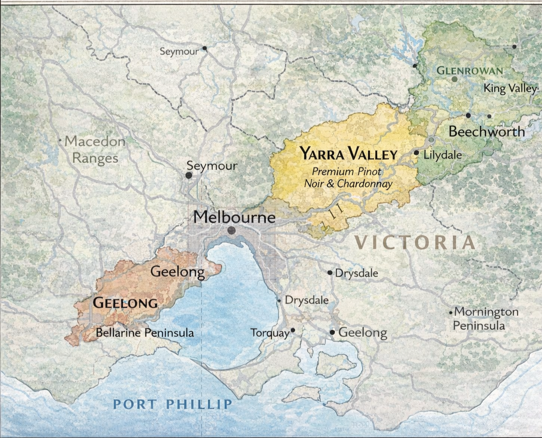 Victoria brings together a range of distinct Chardonnay sites. The Yarra Valley, one of Australia’s oldest wine regions, combines valley floor and higher elevation vineyards with different climates and soils.