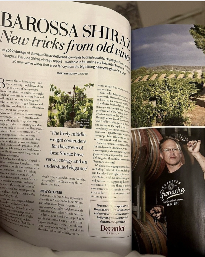From four Blewitt Springs sites, all old, dry-grown bush vine. One parcel was fermented in a concrete pyramid with crushed fruit and whole bunches, the rest open fermented with 35% whole bunches; maturation mainly in old puncheons. 2023 has delivered grenache of beguiling perfume. In the best examples there's also depth, spice and the structural architecture to age. Such is the case here. Dusky dark rose, cherry, wild raspberry, ground cinnamon, rosehip and bergamot tea with a ferrous substratum. The tannins across the ’23 grenache bottlings at this address are excellent, assertive in a finely sandy and gently pithy way.