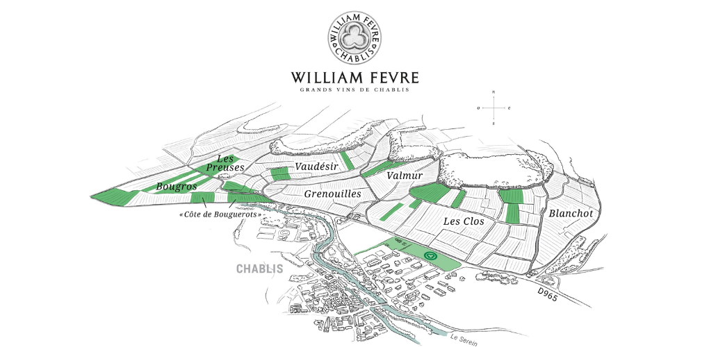 Today, Domaine William Fèvre owns around 76 hectares (190 acres) in Chablis, 15 hectares (37 acres) of which are in grand cru vineyards including Les Clos, Vaudésir, Bougros and Preuses.